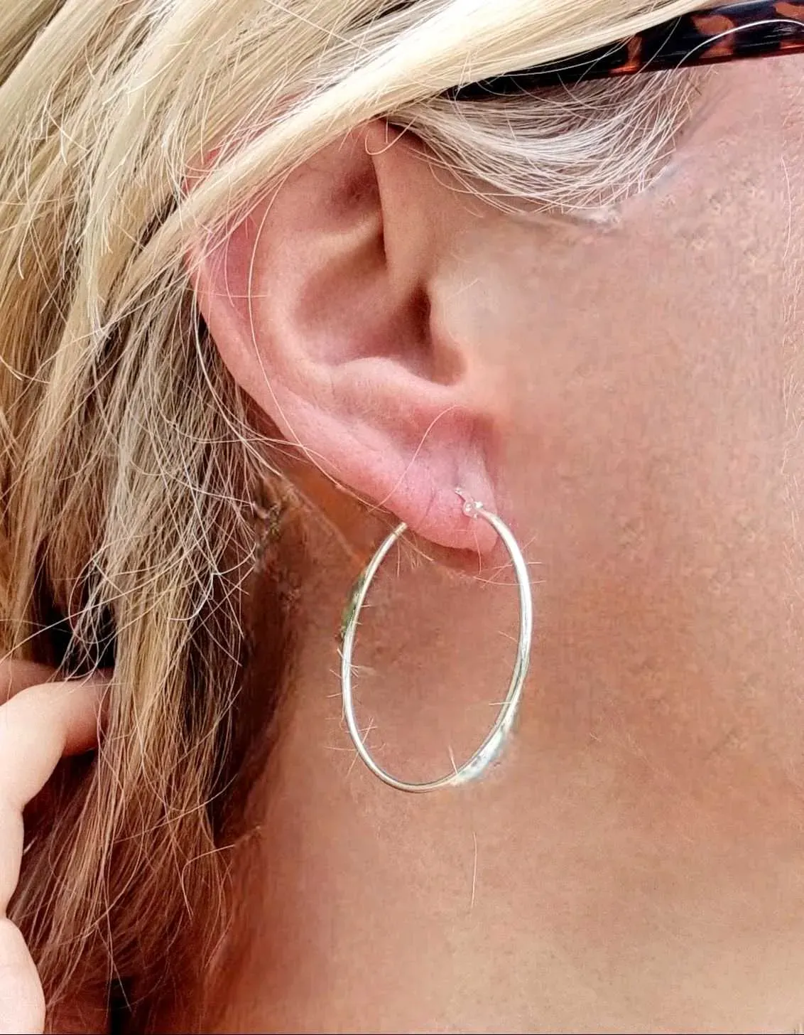 Luce elegante y auténtica con estas hermosas arracadas de plata tubulares de 3.6cm de diámetro interno. Hechas a mano en México, estas arracadas son el complemento perfecto para cualquier ocasión. Añade un toque de estilo mexicano a tu look con este accesorio único.