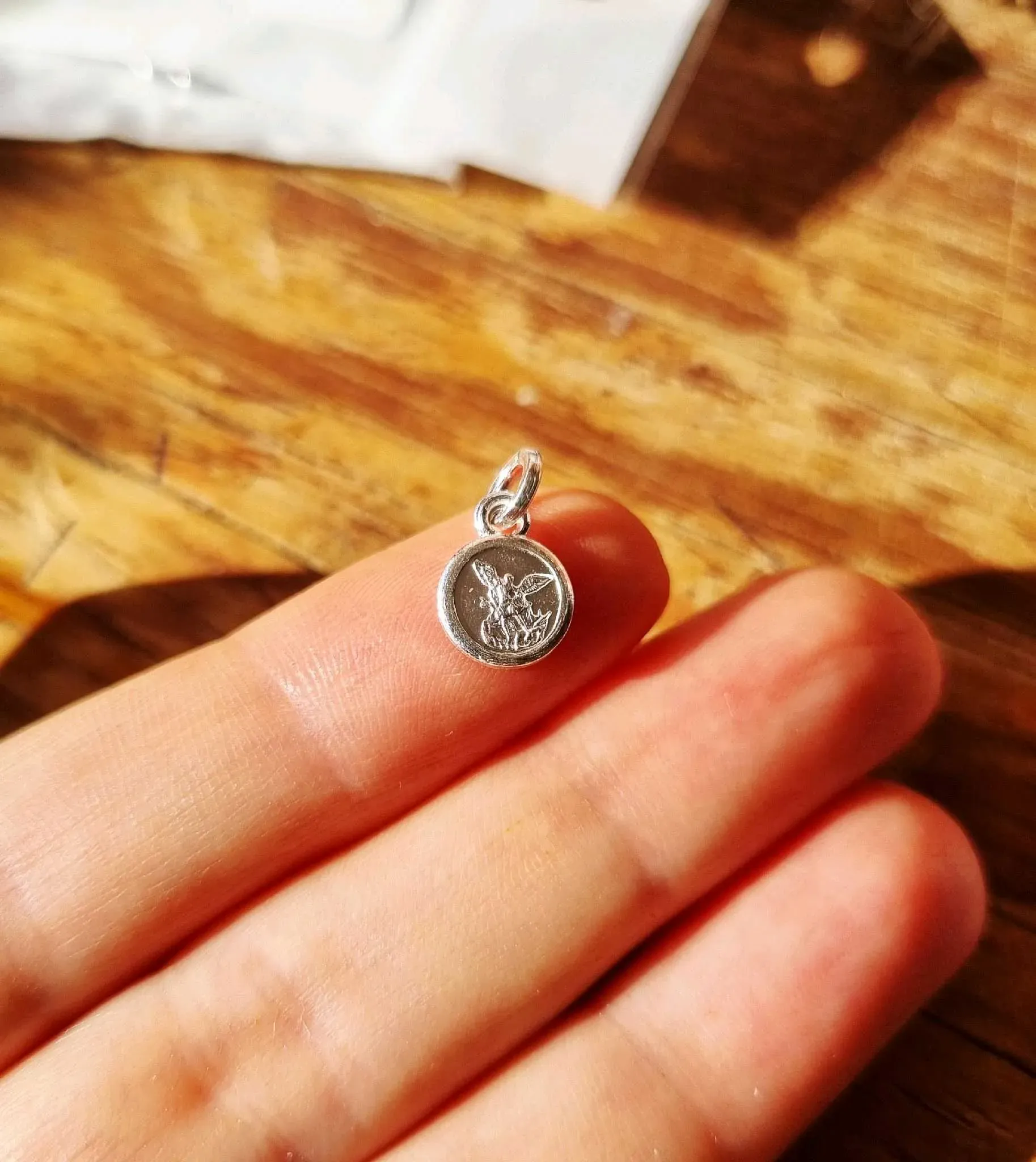 Collar San Miguel chiquito elaborado en plata 925, una pieza única que refleja la artesanía mexicana. Este dije es un símbolo de protección y belleza, perfecto para lucir con estilo y elegancia. Hecho a mano en México, este collar es una verdadera obra de arte.