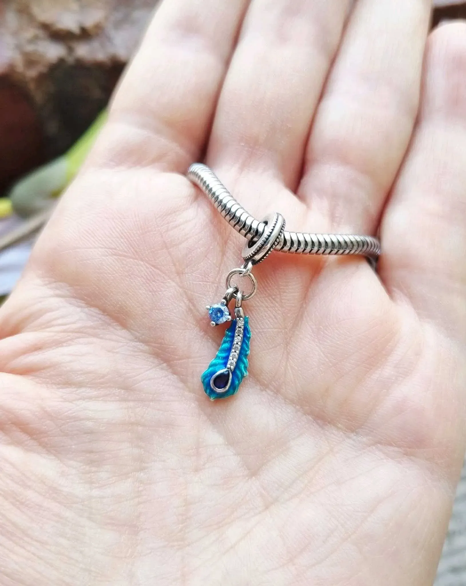 Encantador charm de plata con una exquisita pluma de pavo real, ideal para agregar un toque de elegancia a tu joyería. Aprovecha nuestra oferta especial: ¡llévate 2 charms y obtén un 10% de descuento en el total! Perfecto para complementar tus accesorios con estilo y distinción.