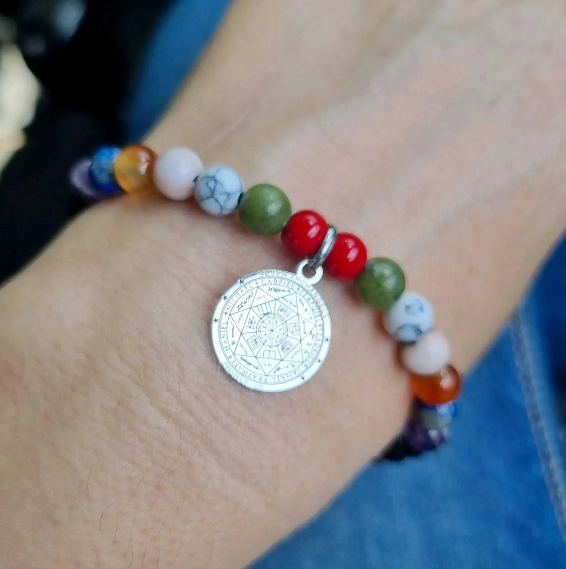 Lleva contigo la protección de los 7 arcángeles con esta hermosa pulsera ajustable de plata y piedras naturales en los colores representativos de cada arcángel. Hecha a mano en México, esta pulsera es un símbolo de conexión espiritual y energía positiva.